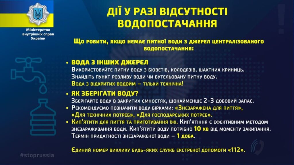 У свою чергу Міністерство внутрішніх справ опублікувало таку інфографіку, що також стосується відсутності водопостачання.