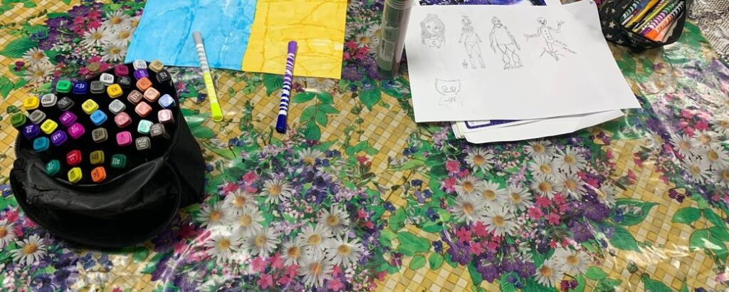 Саме малювання заспокоює і дітей Юрія Басанця з Сум. Тому з собою в укриття беруть олівці та папір, малюють синьо-жовті прапори.